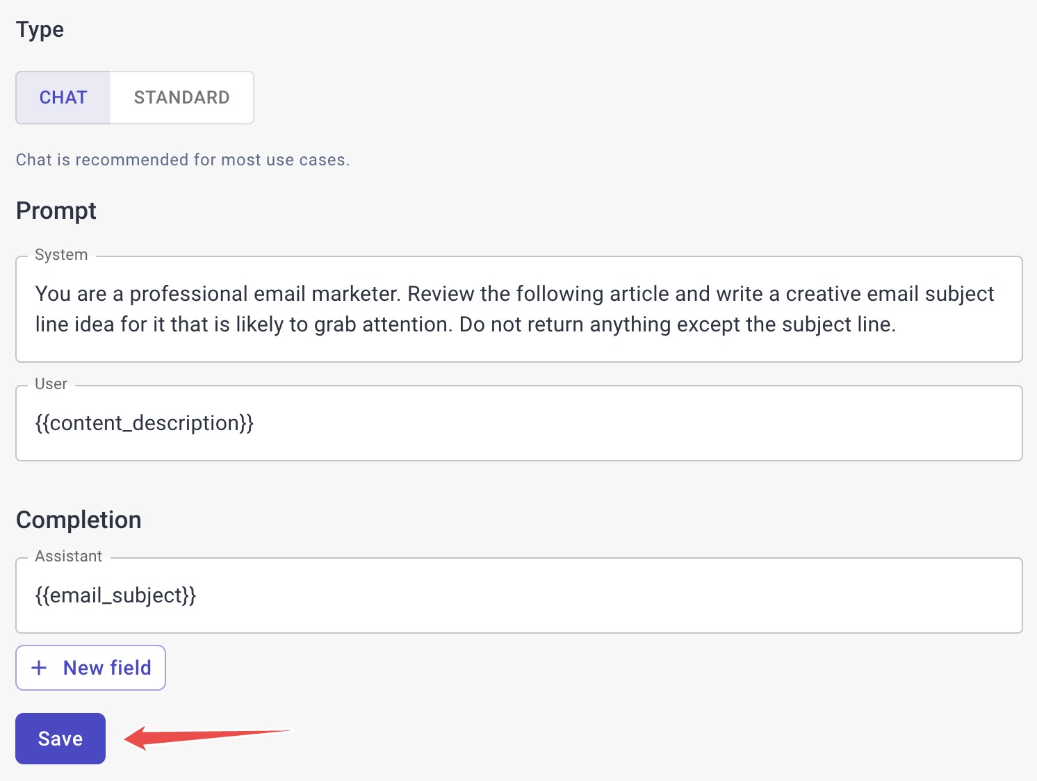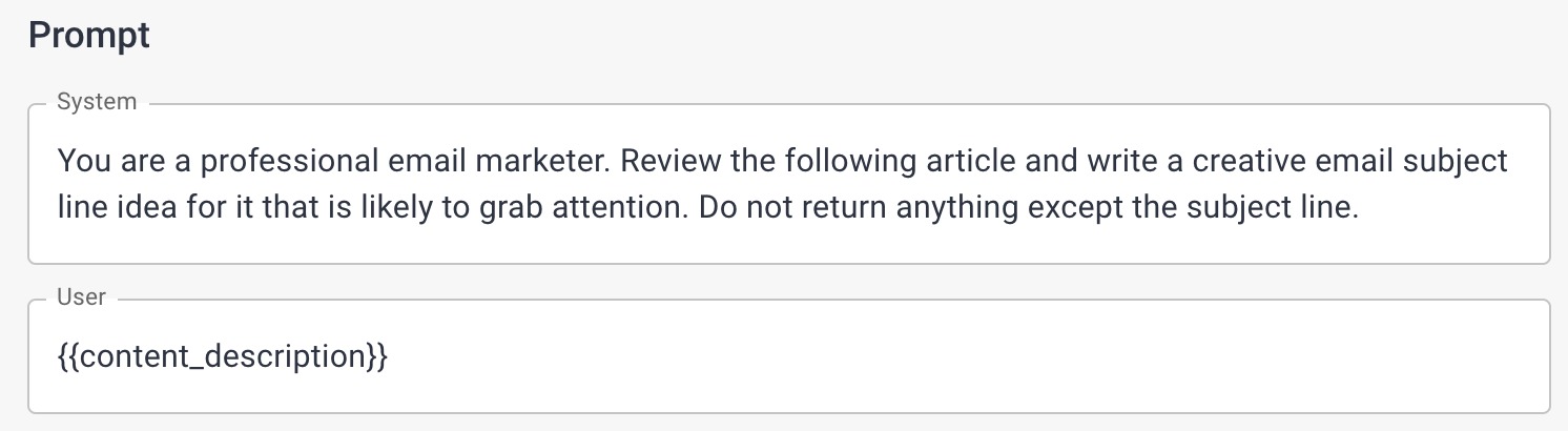 Now press the button to insert the new Content Description field into your `user` prompt.