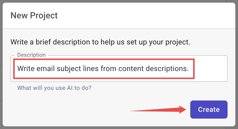 Press "Create" and you will land in a new Project called "Subject Line Writer" or similar.